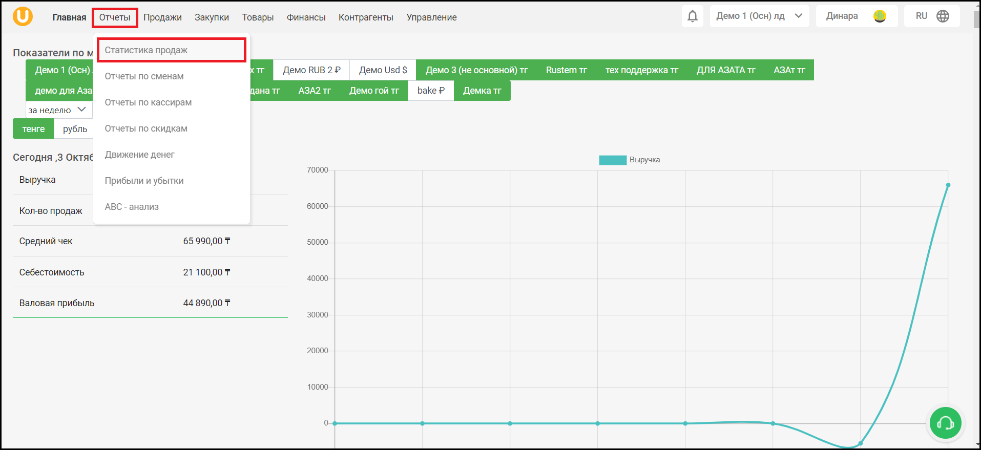 Для того, чтобы просмотреть статистику продаж по консультантам, перейдите в раздел “Отчеты” → “Статистика продаж”.