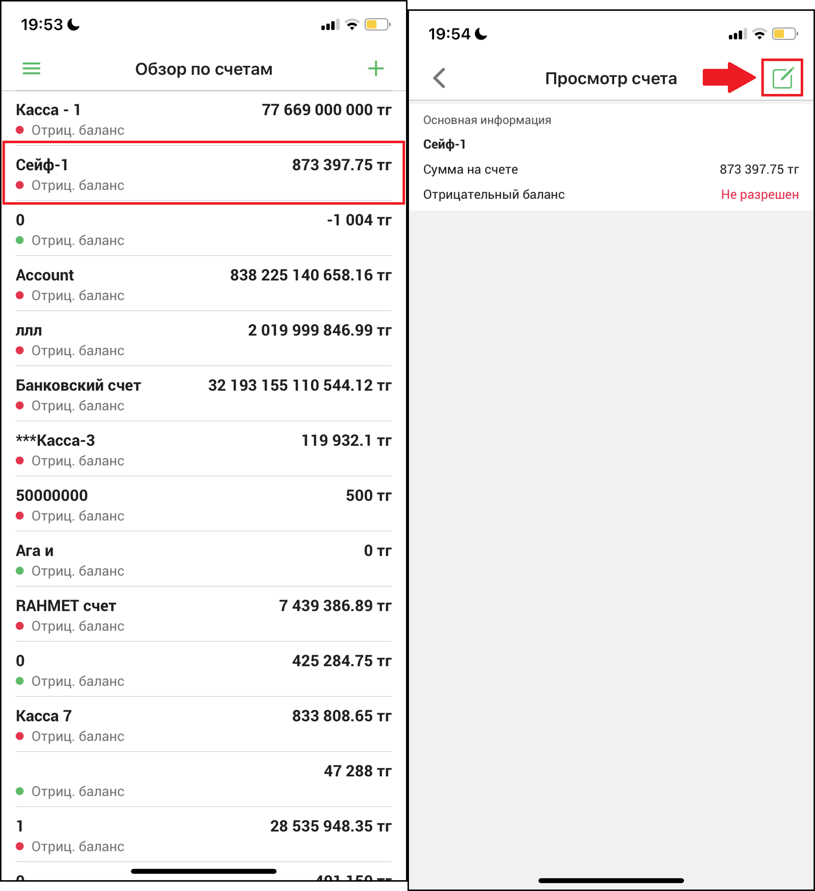 Для того, чтобы отредактировать счет, нажмите на название счета, либо на кнопку “📝” в левой части списка.