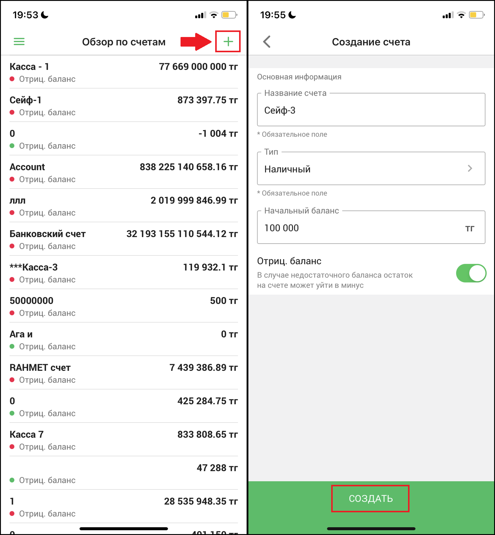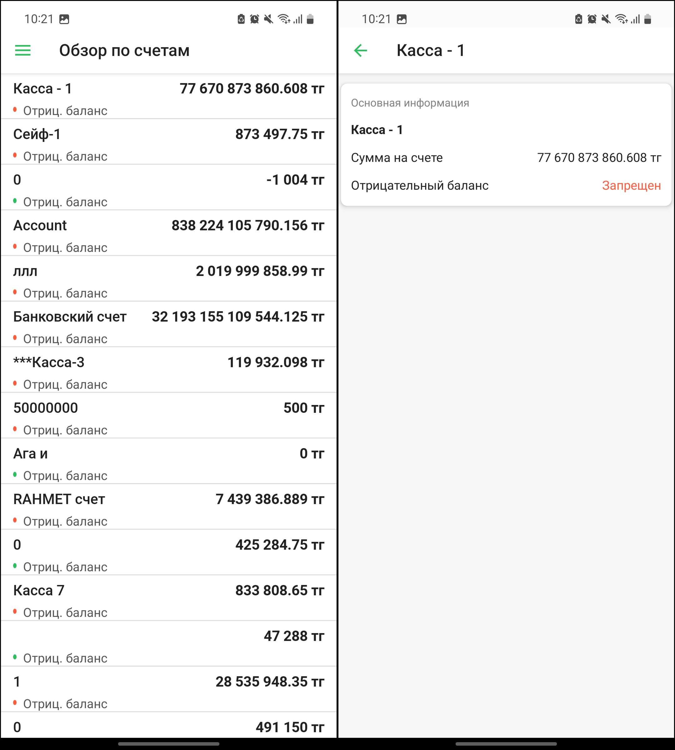 ⚠️ Важно отметить, что вы не можете отображать более одного наличного счета на кассе и иметь более 10 безналичных счетов.
