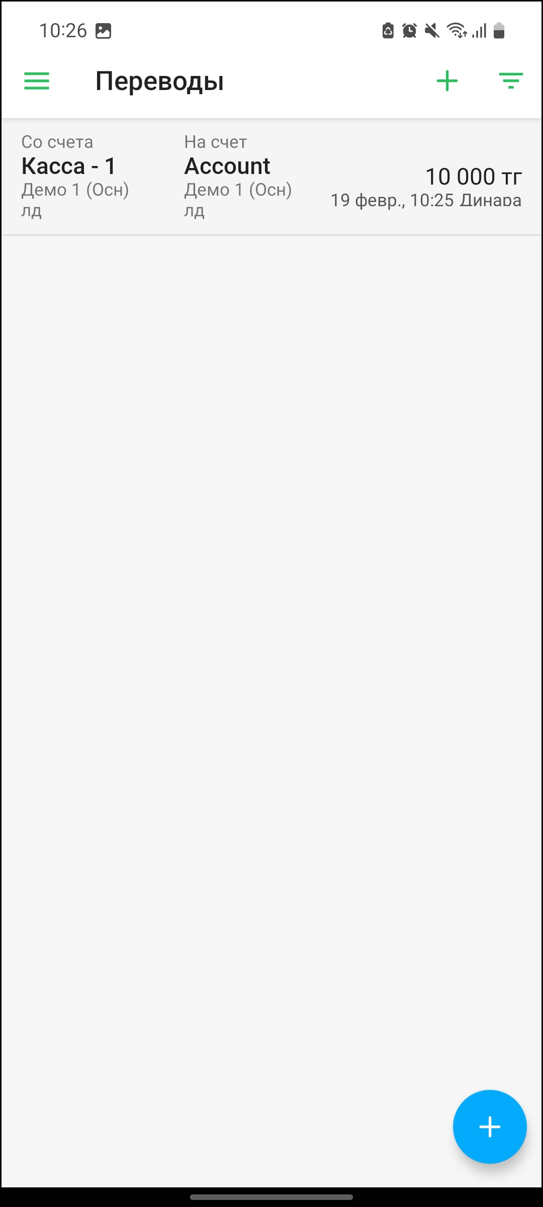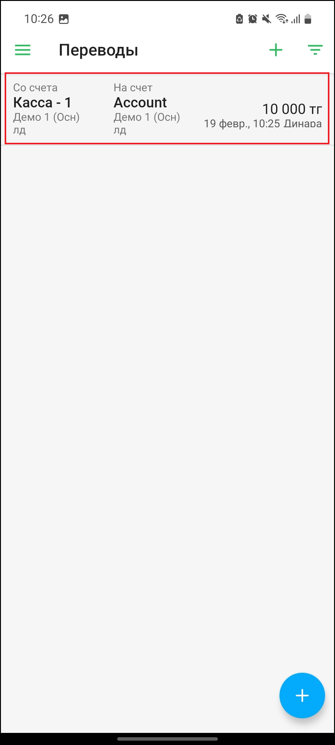 Для того, чтобы создать перевод, нажмите на кнопку “➕” в правом верхнем углу экрана, либо на кнопку “➕” в правом нижнем углу экрана.