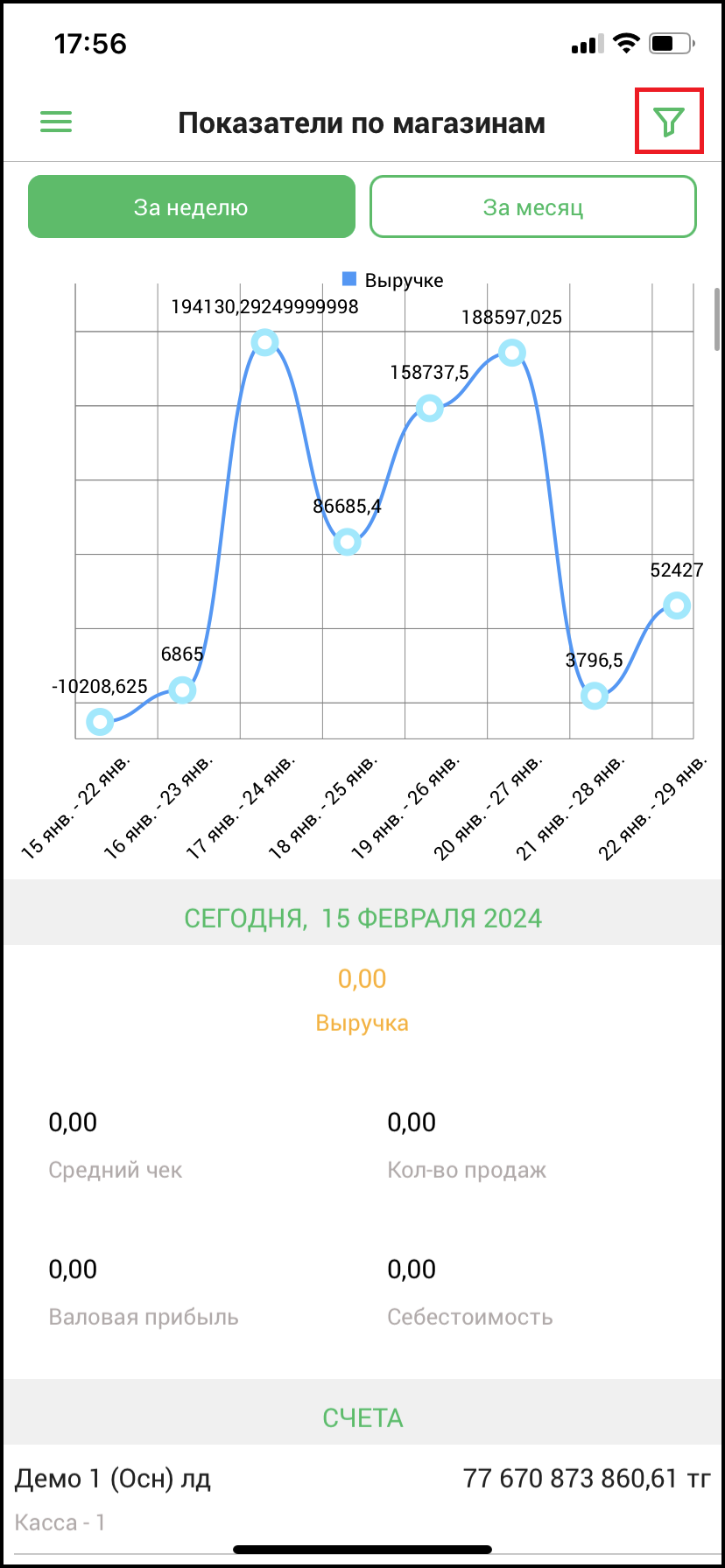 Нажмите на кнопку в правом верхнем углу страницы, чтобы выбрать торговые точки для отображения статистики.