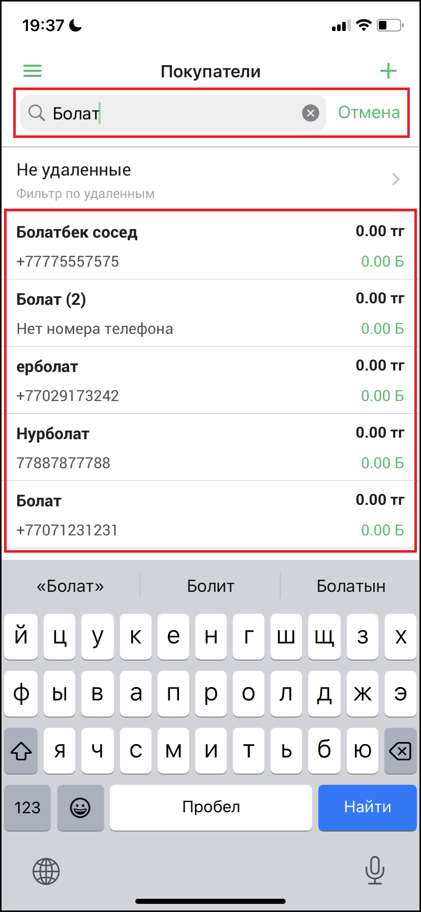 Воспользуйтесь полем “Поиск” для того, чтобы найти определенного клиента.