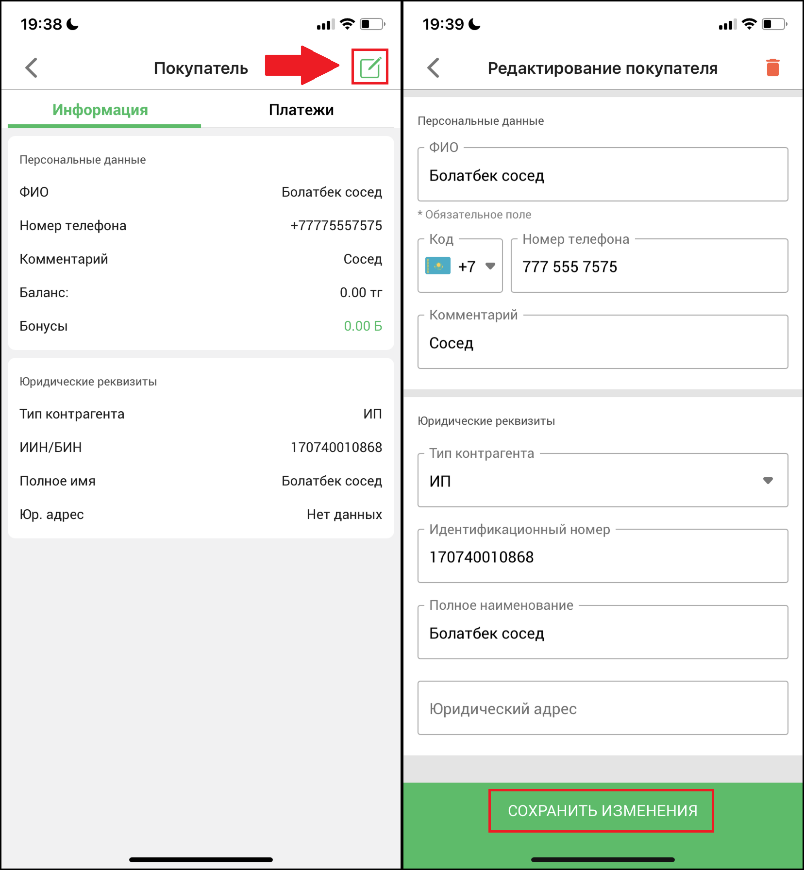Для того, чтобы отредактировать покупателя, нажмите на кнопку “Редактировать”.
