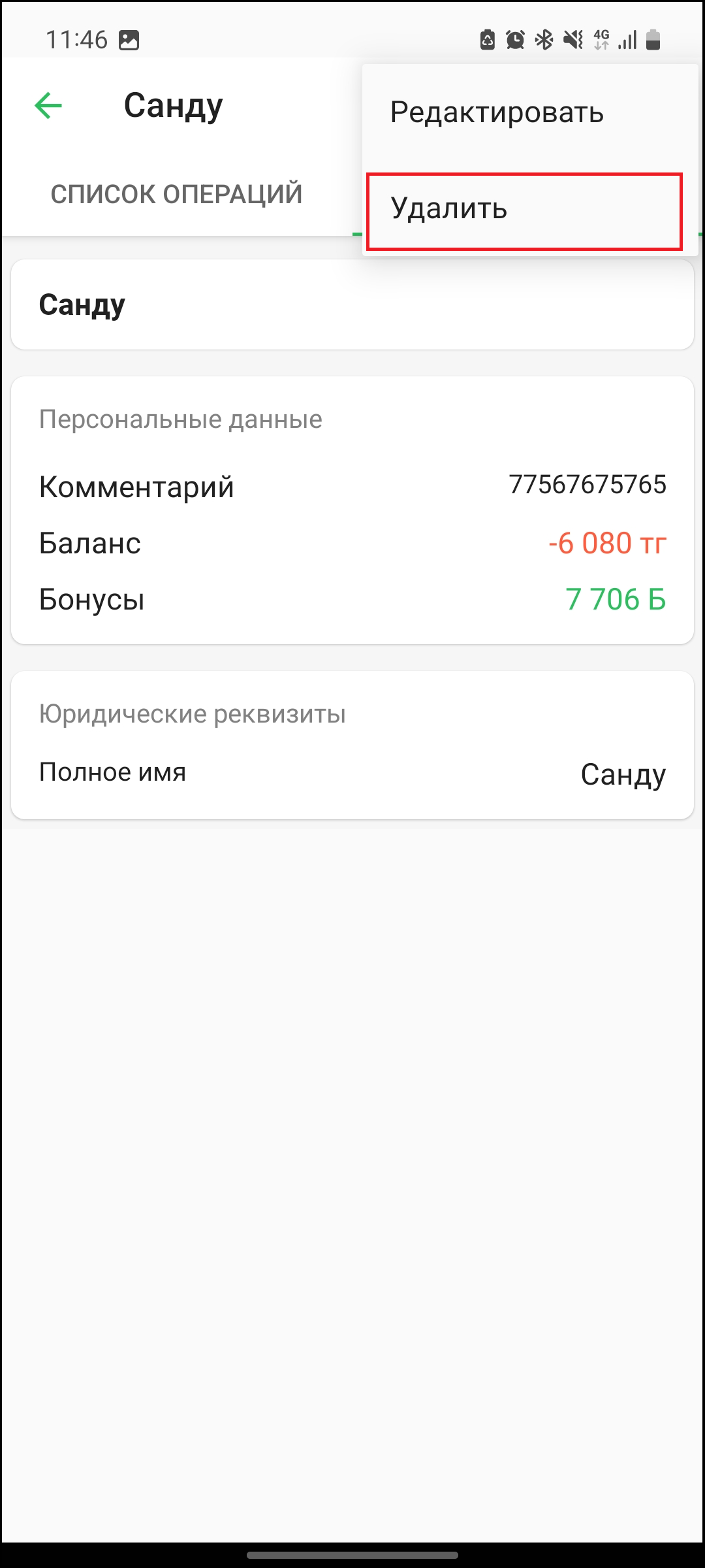 Для того, чтобы удалить покупателя, нажмите на три точки в правом верхнем углу страницы и выберите “Удалить”.