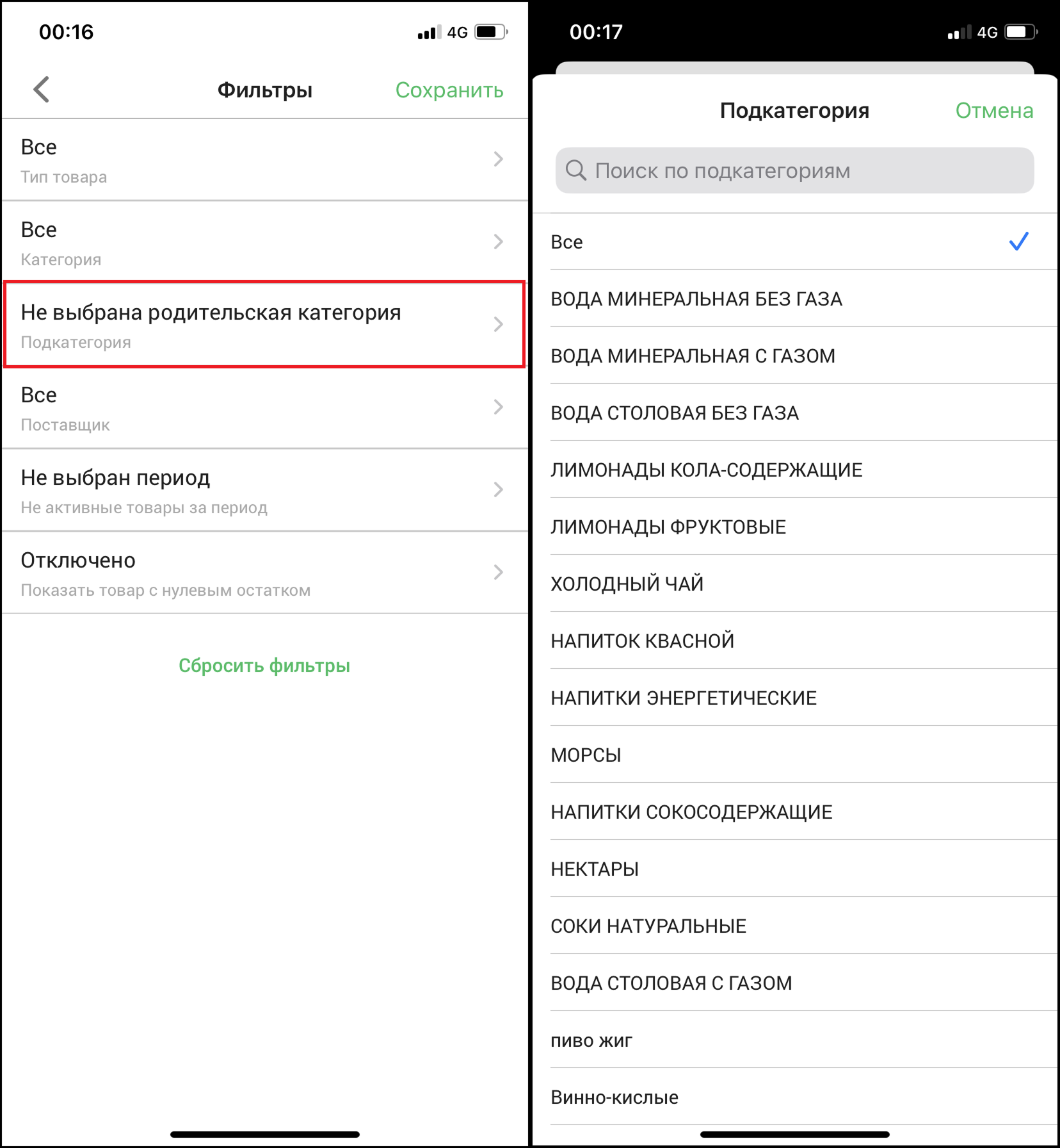 Нажмите на вкладку “Категория”, чтобы отредактировать фильтр по категории товара. Откроется окно “Категория”, выберите необходимую вам категорию для отображения товаров. Нажмите на вкладку “Подкатегория” “Подкатегория”, выберите необходимую вам подкатегорию для отображения товаров.