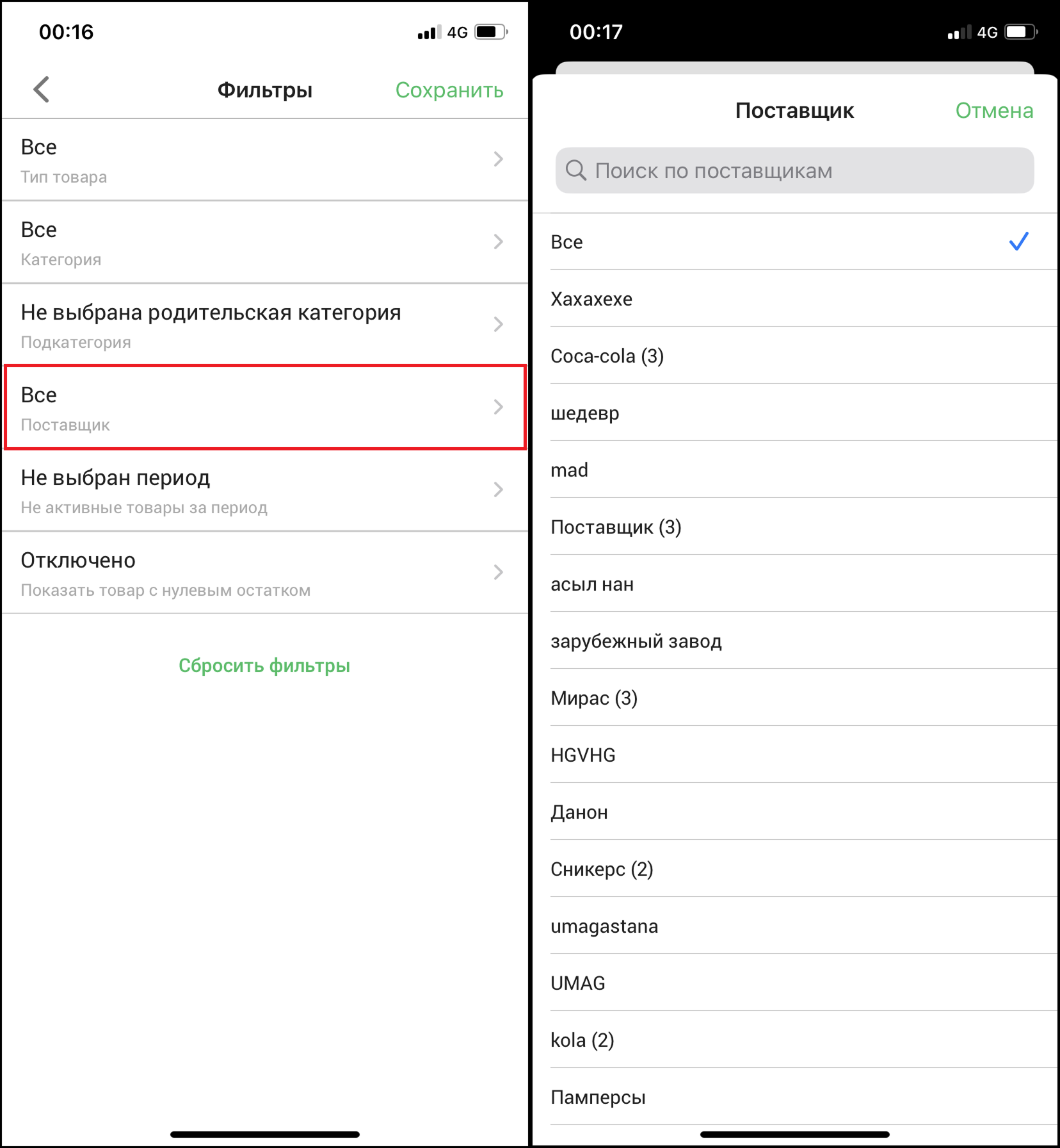 Нажмите на вкладку “Поставщик”, чтобы отредактировать фильтр по поставщику товара.