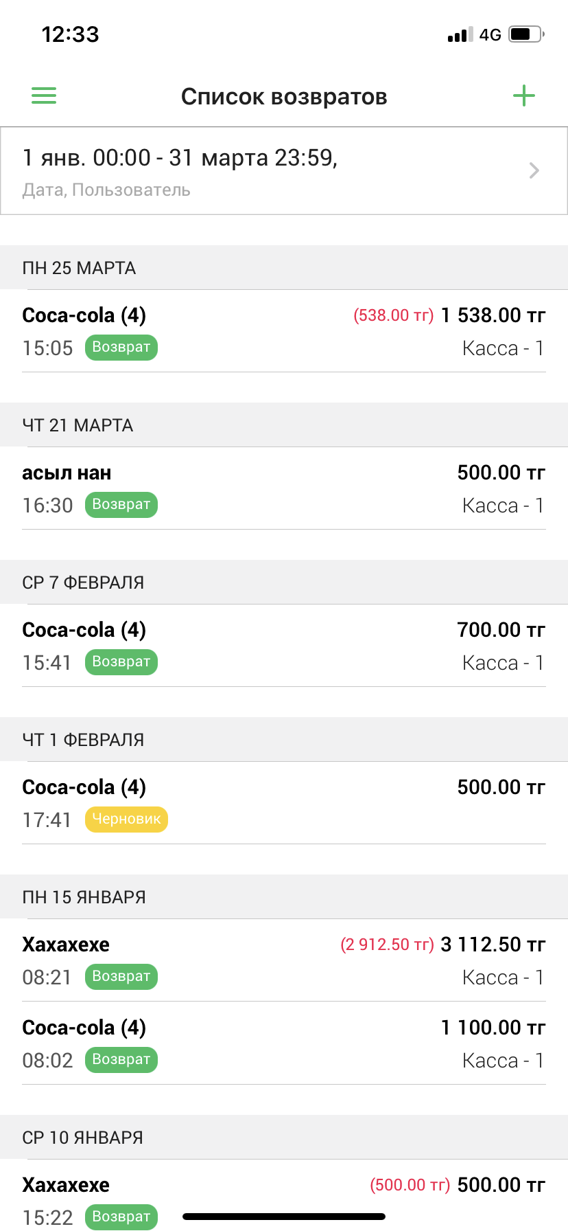 Для того, чтобы создать возврат, нажмите на кнопку “➕” в правом верхнем углу экрана.